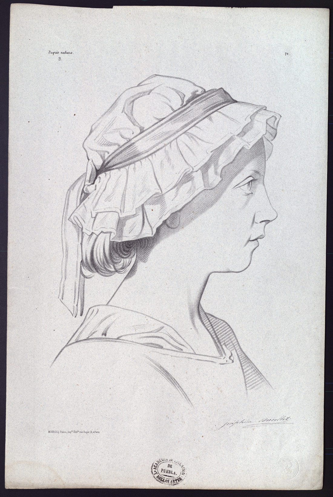 - Esquina superior izquierda: d'après nature / B. Esquina superior derecha: 71. Esquina inferior izquierda: MONROCQ Frères, Editrs. Imprs. r. Suger, 3, à Paris